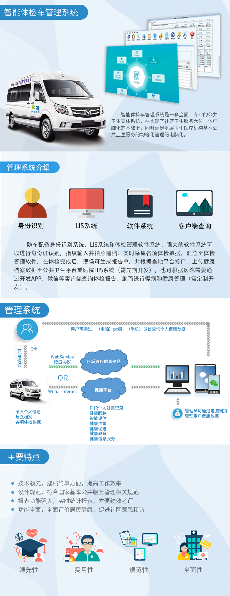 移動智能體檢車依托于健康體檢車和移動體檢系統(tǒng),化驗設(shè)備輕量化,醫(yī)生無需攜帶過...